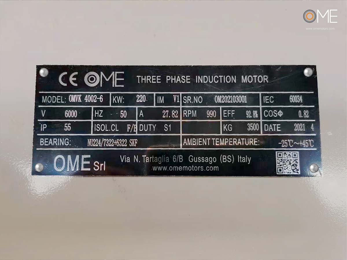 • Specifiche: Serie OMVK 400-6 220kw; 6000V 50HZ IP55 IC611 V1